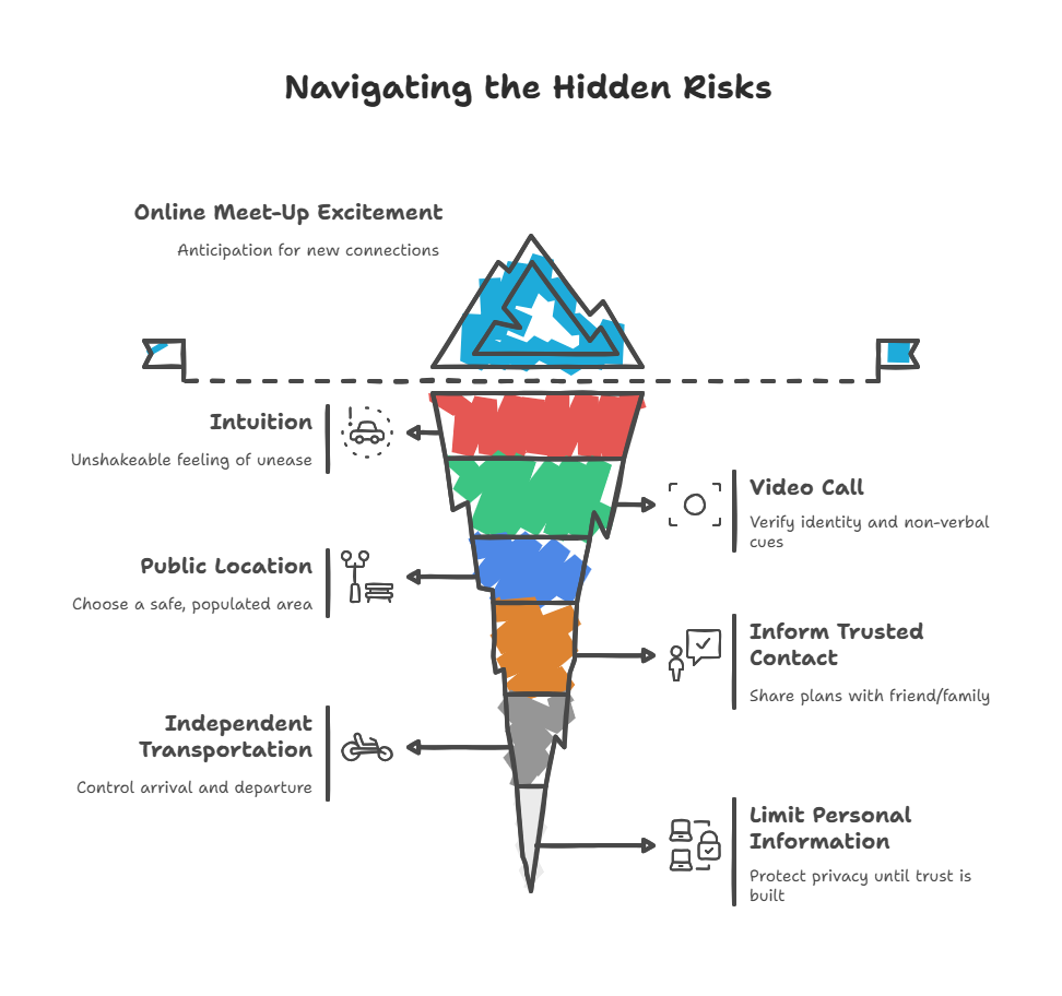 Trust your instincts, stick to public places, and don’t let anyone rush you or guilt you into ignoring red flags. The right person will have no problem with reasonable safety precautions because they actually care about your wellbeing.